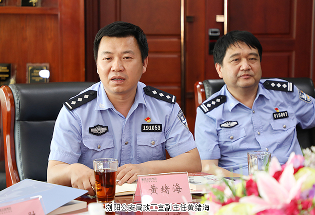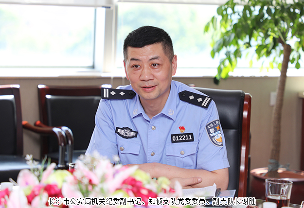 2020年5月19日,長沙市公安局機(jī)關(guān)紀(jì)委副書記、知偵支隊黨委委員、副支隊長謝勝一行蒞臨綠之韻集團(tuán)調(diào)研指導(dǎo)。瀏陽公安局政工室副主任黃緒海,瀏陽市公安局經(jīng)開分局局長戴燦明、教導(dǎo)員羅澤懷,綠之韻集團(tuán)董事總裁勞嘉,長沙市公安局特邀形象監(jiān)督員、綠之韻集團(tuán)副總裁胡均安,綠之韻集團(tuán)黨委書記劉云、副書記許達(dá)仲等領(lǐng)導(dǎo)全程陪同。