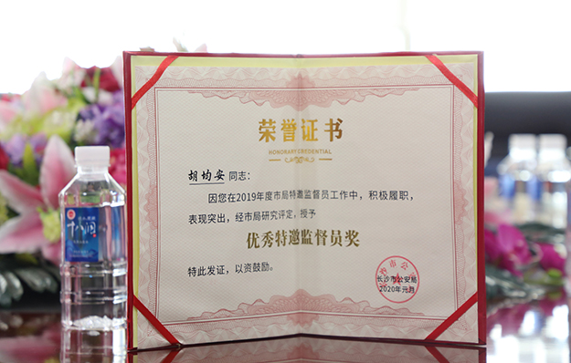 調(diào)研期間,長沙市公安局機(jī)關(guān)紀(jì)委副書記、知偵支隊黨委委員、副支隊長謝勝向特邀監(jiān)督員簡要匯報了2020年第一季度長沙市公安局主要工作:2020年是長沙公安的“社會治理創(chuàng)新年”“數(shù)據(jù)警務(wù)深化年”和“保障體系優(yōu)化年”,一季度市局工作主要圍繞“戰(zhàn)役情,保平安,體現(xiàn)長沙公安擔(dān)當(dāng);提能力,強(qiáng)隊伍,全面從嚴(yán)管黨治警;嚴(yán)打處,提服務(wù),維護(hù)社會治安穩(wěn)定”三個方面開展,取得了一定的成果。他表示,建立特邀監(jiān)督員制度是長沙公安機(jī)關(guān)以開放的姿態(tài)主動接受外部監(jiān)督的一項重要舉措,從這一年多時間的實踐來看,各位特邀監(jiān)督員能夠主動履職盡責(zé),積極建言獻(xiàn)策,充分發(fā)揮了群眾基礎(chǔ)好、業(yè)務(wù)水平高、實踐經(jīng)驗豐富等優(yōu)勢,從第三者的視角彌補(bǔ)了紀(jì)檢機(jī)關(guān)的監(jiān)督盲區(qū),為長沙公安隊伍建設(shè)提出了許多寶貴的意見建議。座談會上,市局機(jī)關(guān)紀(jì)委副書記、知偵支隊黨委委員、副支隊長謝勝向胡均安副總裁頒發(fā)了“優(yōu)秀特邀監(jiān)督員”榮譽(yù)證書。