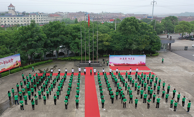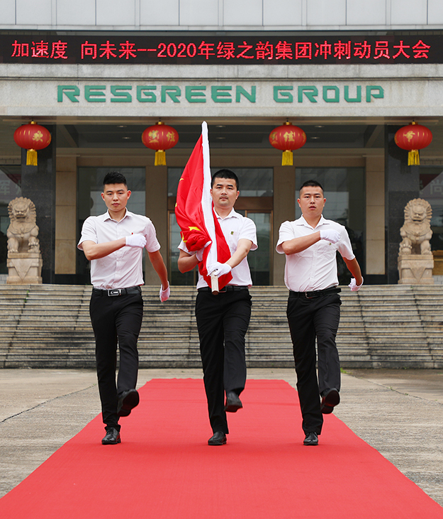 一曲激昂澎湃的《綠韻飛揚(yáng)》拉開了動(dòng)員大會(huì)序幕。在集團(tuán)公司前坪,全體綠之韻人統(tǒng)一著裝、整齊列隊(duì)迎接升旗儀式暨動(dòng)員大會(huì)。伴隨著莊嚴(yán)雄壯的國歌聲,鮮艷的五星紅旗冉冉升起,綠之韻家人向國旗行注目禮,內(nèi)心激蕩著對偉大祖國的熱愛和崇敬。