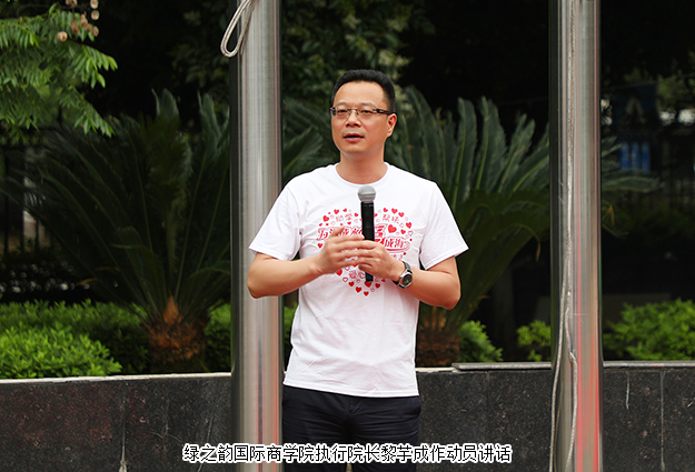綠之韻國際商學(xué)院執(zhí)行院長黎芋成作動(dòng)員講話。他在講話中表示,此次沖刺動(dòng)員大會(huì)是綠之韻人在新冠肺炎疫情取得階段性勝利后迎來的首次大團(tuán)聚。大家要有強(qiáng)烈的珍惜感、責(zé)任心和目標(biāo),用飽滿的精神狀態(tài),為夢想和目標(biāo)努力奮斗。