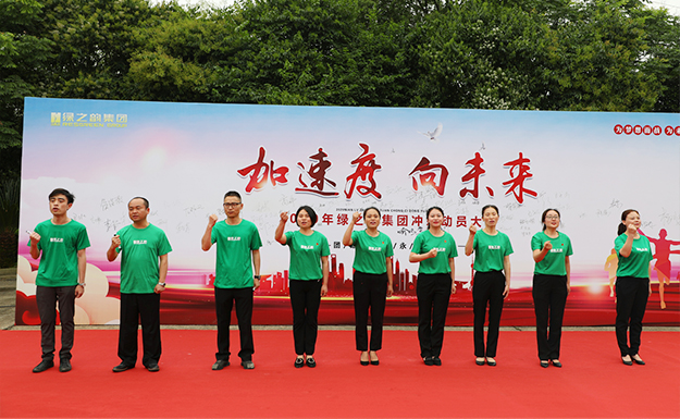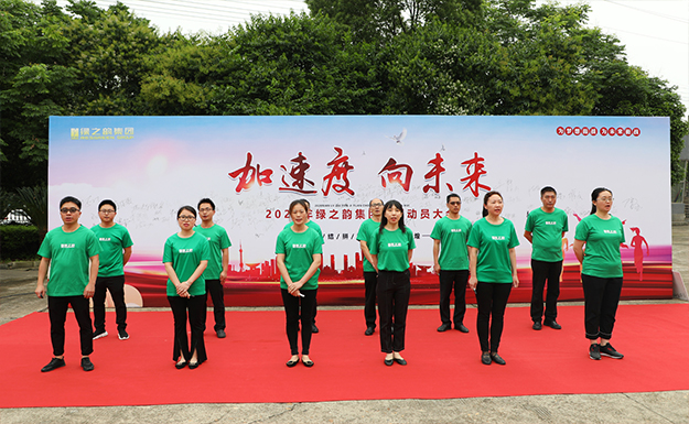 加速度,向未來!5月8日上午,2020年綠之韻集團(tuán)沖刺動(dòng)員大會(huì)舉行。綠之韻集團(tuán)董事長胡國安、董事總裁勞嘉攜公司高管及全體員工參加活動(dòng)。