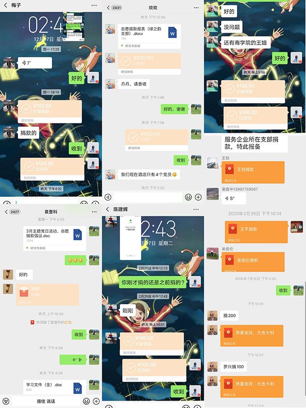 為打贏疫情防控阻擊戰(zhàn),積極響應(yīng)黨中央對廣大黨員的號召,3月4日,綠之韻集團(tuán)黨委組織廣大黨員同志,自愿捐款支持新冠肺炎疫情防控工作。此次捐款尊重黨員意愿,堅持自覺自愿、量力而行,不提硬性要求,不搞強(qiáng)迫命令,普通黨員捐款一般不超過100元,倡導(dǎo)黨員同志根據(jù)實(shí)際情況表達(dá)愛心。廣大黨員同志接到捐款倡議后,踴躍參與,在現(xiàn)場根據(jù)文明“一米線”原則進(jìn)行捐款,在家中值守和線上輪班的黨員通過微信轉(zhuǎn)賬的方式進(jìn)行捐款。