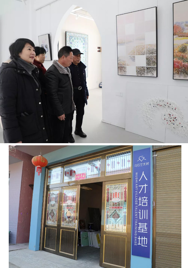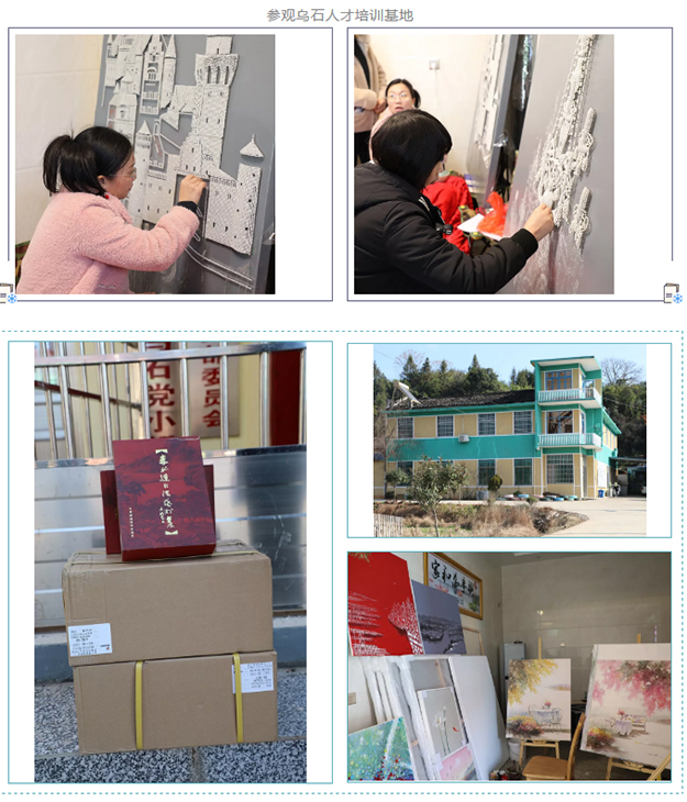 愛心志愿者一行參觀了人才培訓(xùn)基地和烏石當(dāng)代藝術(shù)館。在烏石當(dāng)代藝術(shù)館內(nèi),陳列著的一幅幅頗具藝術(shù)感的畫作。據(jù)了解,這些畫作都是由村里人才基地培訓(xùn)后的村民手工制作而成的。在人才培訓(xùn)基地,村民們不僅能培養(yǎng)書法繪畫的興趣愛好、豐富業(yè)余生活,還能在畫作賣出之后獲得收益,貼補(bǔ)家用。了解到館內(nèi)目前書籍收藏較少,劉云書記和綠之韻愛心志愿者特地籌集了一批藝術(shù)書籍捐贈給藝術(shù)館,以豐富館藏。