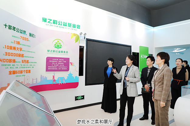 調(diào)研組一行參觀了綠之韻集團(tuán)即將落成的國際會議中心展廳。綠之韻集團(tuán)董事、總裁勞嘉、黨委書記劉云陪同調(diào)研組一行依次參觀了“水之源起、水之驕子、水之柔和、水之信仰、水之寬廣、水之謀略、水之長遠(yuǎn)、水之使命”八個展廳,從文字、圖片、影視多角度、全方位向調(diào)研組一行展示了綠之韻入駐瀏陽經(jīng)開區(qū)十六年的發(fā)展歷程。勞嘉總裁圍繞產(chǎn)品研發(fā)、精準(zhǔn)扶貧、非公黨建和公益慈善等方面的工作情況向調(diào)研組一行作了詳細(xì)匯報。多年來,綠之韻大力推進(jìn)自主創(chuàng)新,深化產(chǎn)學(xué)研創(chuàng)新模式,先后與國內(nèi)多所高等院校達(dá)成科研合作,全面推進(jìn)產(chǎn)品升級換代,基地建設(shè)亦日趨規(guī)模化、標(biāo)準(zhǔn)化、現(xiàn)代化,著力打造綠之韻大健康全產(chǎn)業(yè)鏈。在企業(yè)發(fā)展的同時,公司積極承擔(dān)社會責(zé)任,踴躍參與和傾情捐助了愛心助學(xué)、關(guān)愛貧困母親、修橋補(bǔ)路、賑災(zāi)扶貧等百余項社會公益事業(yè),累計捐贈款物近7000萬元。