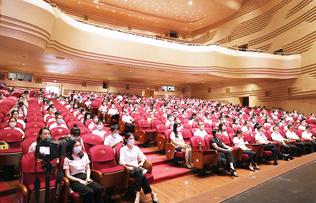2020年6月30日,“紅心向黨·逐夢(mèng)金陽(yáng)”瀏陽(yáng)經(jīng)開(kāi)區(qū)(高新區(qū))2020年度七一表彰大會(huì)在金陽(yáng)文化藝術(shù)中心舉行。瀏陽(yáng)經(jīng)開(kāi)區(qū)(高新區(qū))黨工委副書(shū)記、管委會(huì)主任談文昌,黨工委副書(shū)記、管委會(huì)副主任尋院豪,黨工委委員、管委會(huì)副主任何六生,黨工委委員、紀(jì)工委書(shū)記肖賽男,企業(yè)黨委專(zhuān)職副書(shū)記陳飛雪等領(lǐng)導(dǎo)參加會(huì)議。綠之韻集團(tuán)董事、總裁勞嘉,黨委書(shū)記劉云,黨委副書(shū)記許達(dá)仲帶領(lǐng)集團(tuán)優(yōu)秀黨員代表和新發(fā)展的中共預(yù)備黨員代表參加會(huì)議。