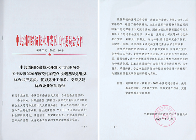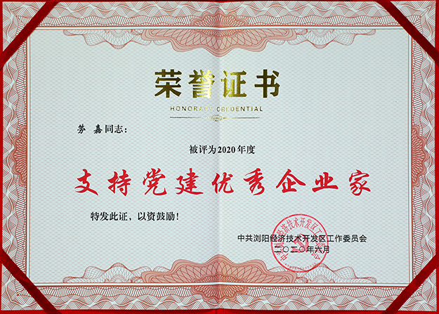隨后,瀏陽(yáng)經(jīng)開(kāi)區(qū)(高新區(qū))黨工委副書(shū)記、管委會(huì)副主任尋院豪宣讀七一表彰文件。與會(huì)領(lǐng)導(dǎo)為獲得表彰的企業(yè)和個(gè)人頒獎(jiǎng)。綠之韻集團(tuán)憑借出色的黨建工作被中共長(zhǎng)沙市委組織部評(píng)為“黨建示范點(diǎn)”“抗擊新冠肺炎疫情先進(jìn)基層黨組織”;綠之韻集團(tuán)董事、總裁勞嘉被瀏陽(yáng)經(jīng)開(kāi)區(qū)(高新區(qū))授予“支持黨建優(yōu)秀企業(yè)家”榮譽(yù)稱(chēng)號(hào);綠之韻集團(tuán)黨委副書(shū)記許達(dá)仲被評(píng)為“優(yōu)秀黨務(wù)工作者”;黨員趙光意、宋沂芳被評(píng)為“優(yōu)秀共產(chǎn)黨員”。