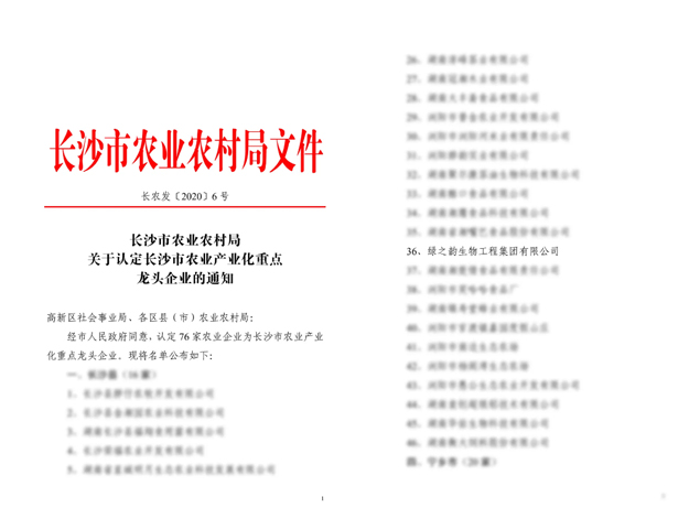 近日,長沙市農(nóng)業(yè)農(nóng)村局下發(fā)《關(guān)于認(rèn)定長沙市農(nóng)業(yè)產(chǎn)業(yè)化重點龍頭企業(yè)的通知》,經(jīng)考察審核,報長沙市人民政府批準(zhǔn),綠之韻集團(tuán)等76家企業(yè)被認(rèn)定為“長沙市農(nóng)業(yè)產(chǎn)業(yè)化重點龍頭企業(yè)”。