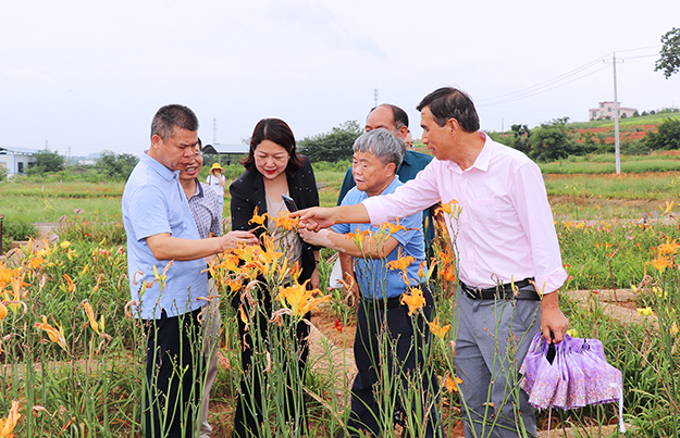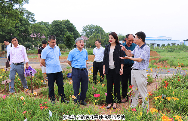 儀式后,祁東縣農(nóng)業(yè)農(nóng)村局黨委書記、局長彭中華,綠之韻集團(tuán)董事、總裁勞嘉,綠之韻集團(tuán)特聘專家、湖南農(nóng)業(yè)大學(xué)博士生導(dǎo)師曾建國教授等一行還參觀考察了綠之韻黃花菜種植示范基地。