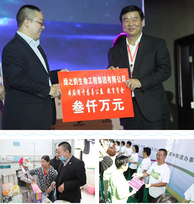 十七年來,綠之韻在胡國安董事長帶領下,在發(fā)展實業(yè)的同時,積極承擔社會責任,產業(yè)富民、回饋社會,如:在全國各地先后援建了11所希望學校,陸續(xù)投入1000萬元開展“樹人行動”,投入300萬元在全國各地開展“綠韻圓夢·書香助學”活動,投入300萬元用于全國貧困母親救助行動,捐贈700萬元為城鎮(zhèn)低保婦女提供“兩癌”免費檢查服務,向湖南省光彩事業(yè)基金會捐贈3000萬元促進“老、少、邊、窮”地區(qū)的經濟發(fā)展和社會進步。