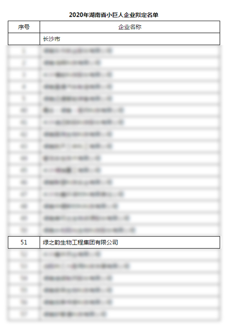 近日,湖南省工業(yè)和信息化廳發(fā)布公示,根據(jù)省經(jīng)信委、省財(cái)政廳《關(guān)于印發(fā)的通知》和省工信廳《關(guān)于做好2020年小巨人企業(yè)培育工作的通知》要求,經(jīng)企業(yè)網(wǎng)絡(luò)申報(bào),市州工信局、省財(cái)政直管縣工信部門(mén)審核推薦,專(zhuān)家評(píng)審,認(rèn)定綠之韻生物工程集團(tuán)有限公司等企業(yè)為2020年湖南省小巨人企業(yè)。