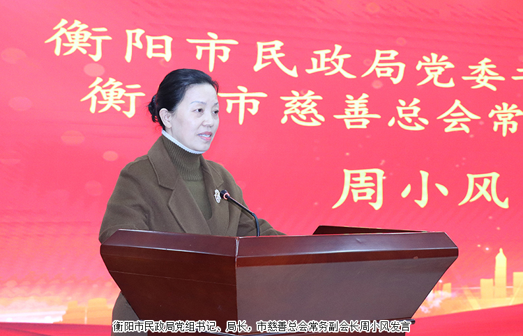 衡陽市民政局黨組書記、局長,市慈善總會常務副會長周小風發(fā)言。她代表衡陽市民政局、衡陽市慈善總會作三點表態(tài),一是以最高的站位擔當使命,二是以最實的作風抓好落實,三是以最大的力度營造聲勢。不斷濃厚公益慈善氛圍,推動社會文明進步,為脫貧攻堅作出新的更大貢獻。