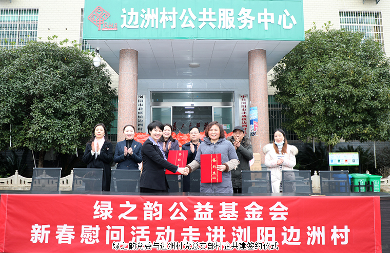 為了更好地助力邊洲村美麗鄉(xiāng)村振興建設(shè),慰問活動期間,綠之韻集團(tuán)黨委與邊洲村黨總支部簽訂了村企結(jié)對共建協(xié)議,承諾今后充分發(fā)揮結(jié)對雙方黨組織的自身優(yōu)勢,形成村企扶貧責(zé)任共同體,努力構(gòu)建“組織共建、資源共享、優(yōu)勢互補、互相促進(jìn)、共同提高”的黨建工作新格局,以黨建統(tǒng)籌引領(lǐng)鄉(xiāng)村振興。