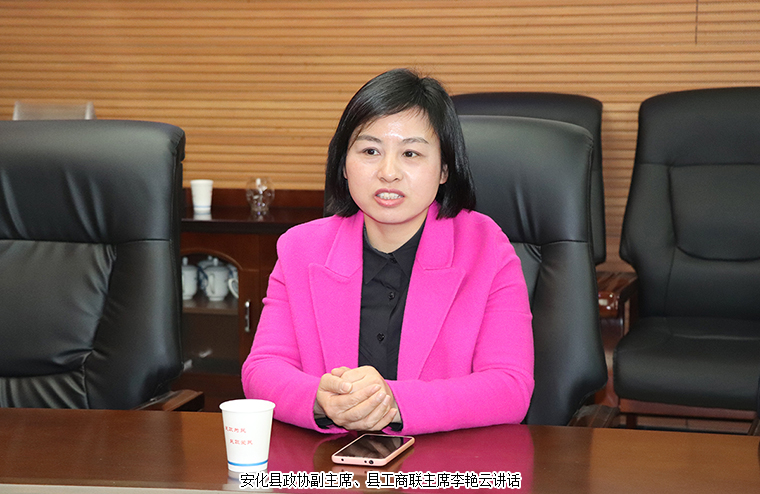 安化縣政協(xié)副主席、縣工商聯(lián)主席李艷云講話。她為胡國安董事長牽掛家鄉(xiāng)人民,冒著嚴寒回到家鄉(xiāng)愛心捐贈的義舉深深感動,她代表家鄉(xiāng)困難群眾向胡國安董事長表達深切謝意:胡國安會長是家鄉(xiāng)人民的驕傲,擁有艱苦奮斗的創(chuàng)業(yè)精神、發(fā)展實業(yè)的成功經(jīng)驗,回報社會、回饋桑梓的大愛情懷,感謝胡國安會長為家鄉(xiāng)發(fā)展與建設(shè)作出的貢獻。