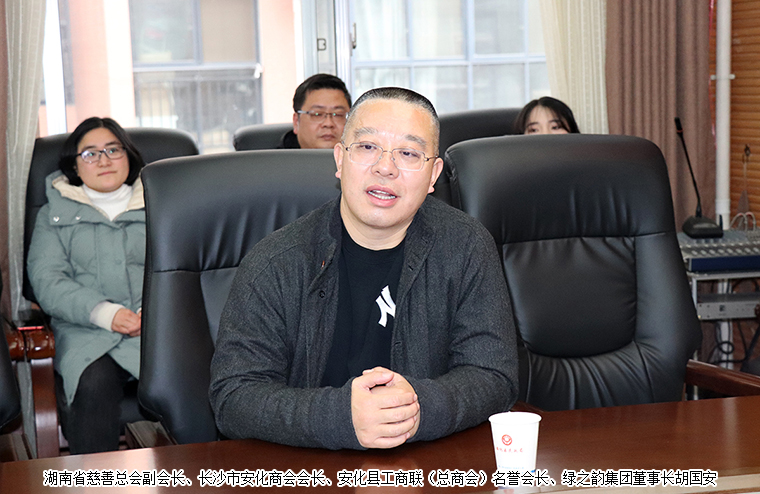 新春送暖顯真情,精準扶貧報桑梓。2021年2月5日,湖南省慈善總會副會長、長沙市安化商會會長、安化縣工商聯(lián)(總商會)名譽會長、綠之韻集團董事長胡國安冒著深冬嚴寒,從長沙出發(fā),驅(qū)車200余公里回到家鄉(xiāng)安化,向安化慈善總會捐贈20萬元現(xiàn)金,用于家鄉(xiāng)困難群眾新春慰問和精準扶貧建設(shè)工作。安化縣政協(xié)副主席、縣工商聯(lián)主席李艷云,安化縣慈善總會副會長兼秘書長游建明及綠之韻集團黨員代表、愛心志愿者參加活動。