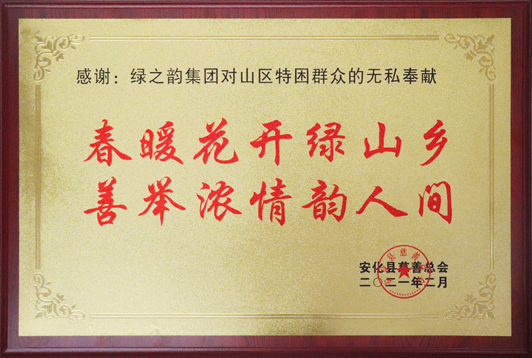 拳拳赤子心,不忘桑梓情。在接受媒體采訪時,胡國安董事長動情說道,“一個企業(yè)小的時候是自己的,大了就是國家的、社會的。”作為一家具有高度社會責任感的企業(yè),綠之韻集團始終堅持“造福人類,回饋社會”的理念。十八年風雨兼程,綠之韻愛心志愿者的足跡遍布全國60多個區(qū)縣,深入貧苦地區(qū)踴躍參與了100多項品牌公益慈善項目,項目涉及賑災濟困、興教助學、孤殘救助、醫(yī)療衛(wèi)生、修路飲水、養(yǎng)老醫(yī)療等多個領(lǐng)域,累計捐贈公益款物7000多萬元。安化是我的家鄉(xiāng),是生我養(yǎng)育我的地方。作為一名從安化大山里走出的企業(yè)家,積極投身到建設(shè)家鄉(xiāng)的事業(yè)中去,是我與生俱來的責任與使命。未來,綠之韻將繼續(xù)投身于賑災、扶貧、幫困等社會慈善事業(yè),開展具有綠之韻品牌和社會影響力的公益活動,創(chuàng)新扶貧幫困的方式方法,進一步推動輸血式扶貧向造血式、產(chǎn)業(yè)式扶貧的轉(zhuǎn)變,并通過聯(lián)動工商聯(lián)和安化商會等平臺橋梁,凝聚更多的資源和力量,用切實的行動帶動更多的安化籍企業(yè)家助力家鄉(xiāng)建設(shè),為家鄉(xiāng)的發(fā)展作出更多新的貢獻!