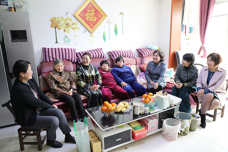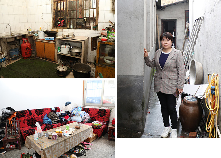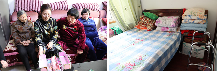 去高艷清家路上,社區(qū)工作人員就在跟我們講她的情況。高艷清丈夫因意外導(dǎo)致高位截癱,一直在做康復(fù)治療;兒子13歲正在讀書,曾因液化氣爆炸事故燒傷在醫(yī)院搶救;婆婆年老多病,公公是精神病患者,盡管家庭困難,高艷琴還是把父母接到家里一起照顧,全家生活靠低保和高艷清打零工為生。遠遠的,高艷清就在巷子口等待走訪一行的到來,她有些羞澀,告訴我們家里沒怎么收拾,實在顧不上,她接了小區(qū)里團購快遞的業(yè)務(wù),從早忙到晚,收貨送貨,中間還要給家里人做飯,丈夫和公婆都因為身體原因也沒辦法干活,公公還曾因為無人看管走失過。房子也是借住的親戚的,生活著實艱難,都壓在了高艷清一個人身上,但她精氣神很好,作為一個妻子、一個母親和一個女兒,她始終不曾放棄。女子本弱,為母則剛,為愛則強,是她的真實寫照。