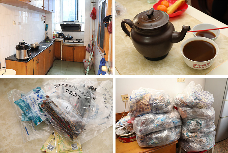 還沒走進張媽媽家里,綠之韻愛心志愿者們就已經(jīng)聞到濃濃的中藥味道彌漫在空氣里。張媽媽一個人在家,但是家里收拾得井井有條。她2016年被確診乳腺癌中晚期,2018年開始惡化,長期在醫(yī)院住院療養(yǎng)、放療、靶向治療,已經(jīng)花費90余萬。走訪那天張媽媽剛?cè)メt(yī)院領(lǐng)完藥回來,由于并發(fā)癥的原因,她現(xiàn)在采取中西藥結(jié)合治療,一個月的中藥包在家里堆成了一座小山,茶幾上也是滿滿一大罐藥,張媽媽苦笑著說這還只是一天的量。因為患病她被原單位辭退,現(xiàn)在屬于無業(yè)人員。幾年前與丈夫離異,還有一個兒子目前送外賣來維持家用,高昂的醫(yī)療費讓一家人生活非常拮據(jù)?,F(xiàn)在的張媽媽每天把家里收拾好,藥香帶來的是一份苦也是一份希望,她盼望早點等到兒子結(jié)婚成家那天。