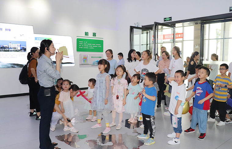穿著米奇米妮服飾的“人偶娃娃”一出場就贏得了小朋友們的青睞,大家紛紛爭著搶著求合影,要抱抱,玩得不亦樂乎,場面瞬時熱鬧了起來。在父母的陪伴下,孩子們首先參觀了綠之韻國際會議中心展廳,在濃烈的企業(yè)文化氛圍中感受爸爸媽媽的工作環(huán)境。孩子們睜大著眼睛,左看看右瞧瞧,眼神里充滿了好奇,不斷向爸爸媽媽詢問了解。