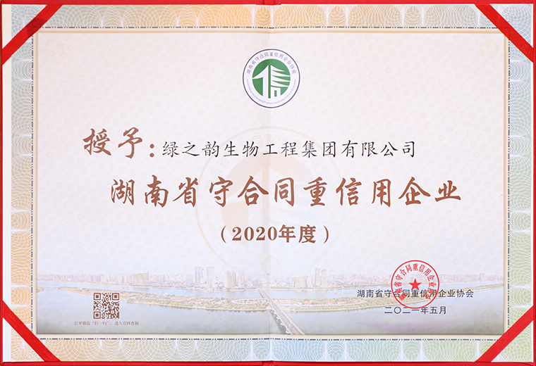“湖南省守合同重信用”企業(yè)公示活動(dòng),旨在推進(jìn)湖南省社會(huì)信用體系建設(shè),引導(dǎo)市場(chǎng)主體建立科學(xué)、合理的合同與信用管理機(jī)制,服務(wù)全省經(jīng)濟(jì)發(fā)展,表彰企業(yè)在信用管理體系、合同制度管理、合約履行能力以及企業(yè)社會(huì)信譽(yù)等方面所取得的成績(jī)。綠之韻連續(xù)多年來(lái)被評(píng)為湖南省“守合同重信用”企業(yè)是政府部門、社會(huì)各界對(duì)公司信用價(jià)值理念和誠(chéng)信服務(wù)實(shí)踐的充分肯定。