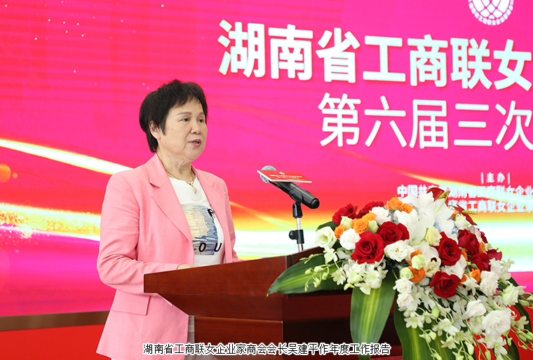 會(huì)上,湖南省工商聯(lián)女企業(yè)家商會(huì)會(huì)長(zhǎng)吳建平作年度工作報(bào)告。她在報(bào)告中對(duì)2020年以來商會(huì)開展的工作進(jìn)行了回顧總結(jié),對(duì)商會(huì)2021年的總體工作進(jìn)行了規(guī)劃部署。并對(duì)在新冠肺炎疫情阻擊戰(zhàn)中各位理事、會(huì)員敢于奉獻(xiàn)、互助友愛、團(tuán)結(jié)進(jìn)步的志愿服務(wù)精神進(jìn)行了表彰和贊揚(yáng)。