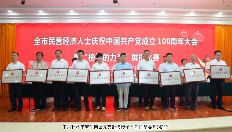 為進(jìn)一步激發(fā)商協(xié)會(huì)組織活力,激發(fā)民營經(jīng)濟(jì)人士愛國熱情,引領(lǐng)民營經(jīng)濟(jì)人士聽黨話、跟黨走,2021年6月29日,長沙市民營經(jīng)濟(jì)人士慶祝建黨100周年大會(huì)暨“榜樣的力量”展播比賽舉行。中共長沙市委常委、統(tǒng)戰(zhàn)部部長譚小平,統(tǒng)戰(zhàn)部副部長、市工商聯(lián)黨組書記何惠風(fēng),長沙市工商聯(lián)主席康鎮(zhèn)麟等領(lǐng)導(dǎo)出席會(huì)議。長沙市安化商會(huì)會(huì)長、綠之韻集團(tuán)董事長胡國安受邀參加會(huì)議。