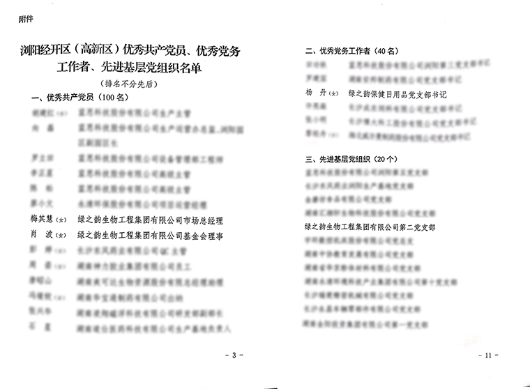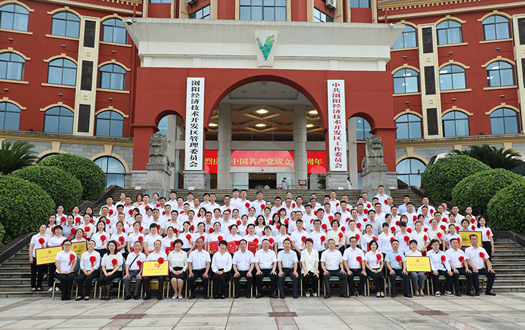 2021年6月30日,瀏陽經(jīng)開區(qū)(高新區(qū))優(yōu)秀共產(chǎn)黨員、優(yōu)秀黨務工作者和先進基層黨組織表彰大會在金陽文化藝術(shù)中心召開。瀏陽經(jīng)開區(qū)(高新區(qū))黨工委副書記、管委會主任談文昌,黨工委委員、管委會副主任何六生,黨工委委員、管委會副主任羅其勝,黨工委委員、紀工委書記肖賽男等領(lǐng)導出席會議。綠之韻集團黨委書記劉云帶領(lǐng)集團優(yōu)秀黨員代表參加會議。