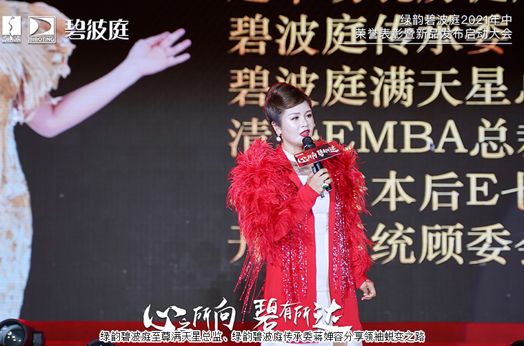 綠之韻集團(tuán)董事、總裁勞嘉為大會致辭。她首先代表集團(tuán)向奮斗在市場一線的每一位碧波庭家人們致以熱烈的歡迎和誠摯的問候。今年是偉大的中國共產(chǎn)黨成立100周年,是碧波庭創(chuàng)立27周年、也是綠之韻和碧波庭牽手11周年,更是集團(tuán)公司“第四個(gè)五年規(guī)劃”即將收官的關(guān)鍵之年。十多年來,綠之韻集團(tuán)始終朝著“建百年企業(yè)、創(chuàng)世界名牌”的企業(yè)初心不懈奮斗。同樣,綠韻碧波庭自創(chuàng)立以來始終秉承著“用實(shí)干做實(shí)業(yè)”的品牌初心。近年來,微商、社交電商、直播帶貨等對行業(yè)的沖擊越來越大,為應(yīng)對這場變革和沖擊,集團(tuán)公司和碧波庭將從產(chǎn)品研發(fā)、教育培訓(xùn)、品牌推廣等方面給予市場最大的支持和幫扶,為綠韻碧波庭的家人們打造更加穩(wěn)定、優(yōu)質(zhì)的事業(yè)平臺。未來,她將與各位綠之韻家人們共同開啟綠韻碧波庭的事業(yè)藍(lán)圖,共同去實(shí)現(xiàn)每一位綠之韻家人們的夢想,共同堅(jiān)守這份初心,堅(jiān)守這份情誼,結(jié)緣碧波庭,圓夢綠之韻。最后,她預(yù)祝本次大會取得圓滿成功。