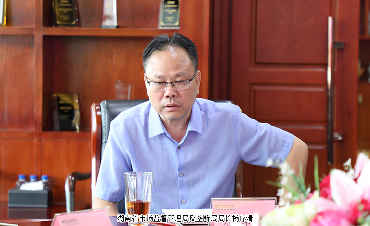 2021年9月3日,湖南省市場監(jiān)督管理局黨組成員、副局長丁珍良,湖南省市場監(jiān)督管理局反壟斷局局長楊序清,湖南省市場監(jiān)督管理局反壟斷局副局長肖向陽等領導一行蒞臨綠之韻集團調研指導。綠之韻集團董事長胡國安、董事總裁勞嘉、副總裁胡均安、市場營銷總經理戴三省、黨委書記劉云、黨委副書記許達仲全程陪同。