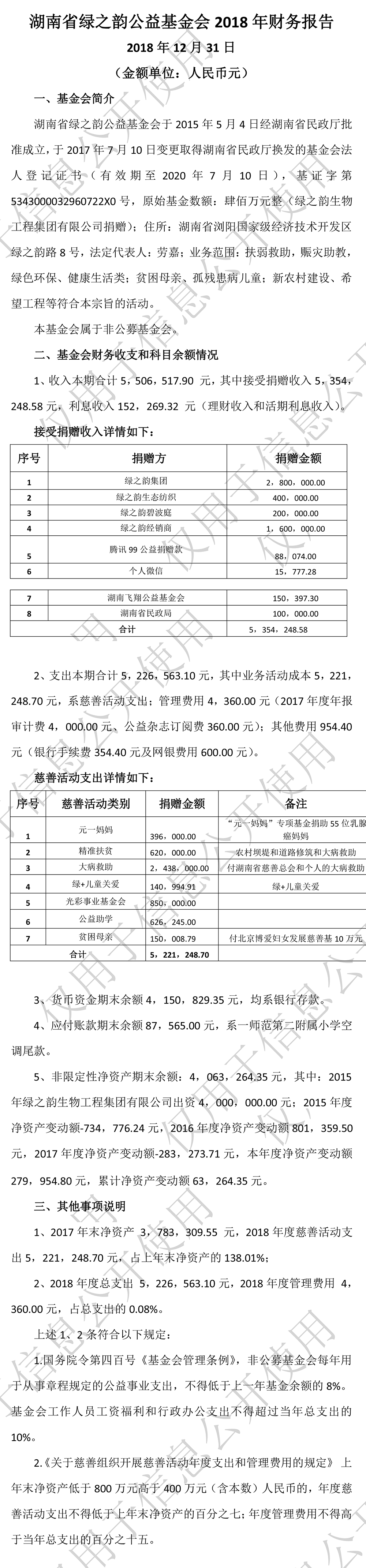 湖南省綠之韻公益基金會(huì)2018年財(cái)務(wù)報(bào)告