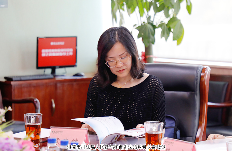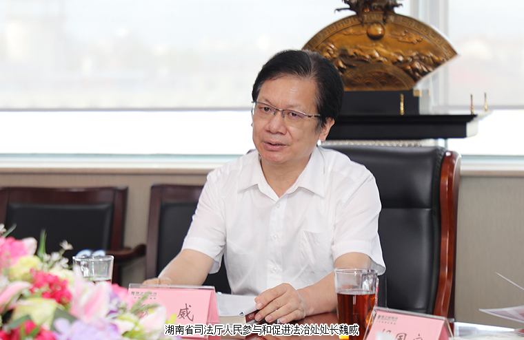 2021年9月10日,湖南省司法廳人民參與和促進法治處處長魏威、湘潭市司法局人民參與和促進法治科科長袁曉健蒞臨綠之韻集團調研指導。綠之韻集團董事長胡國安、董事總裁勞嘉、黨委書記劉云、工會主席兼辦公室行政總監(jiān)馮紅、黨委副書記許達仲、人力資源總監(jiān)皮勁全程陪同。