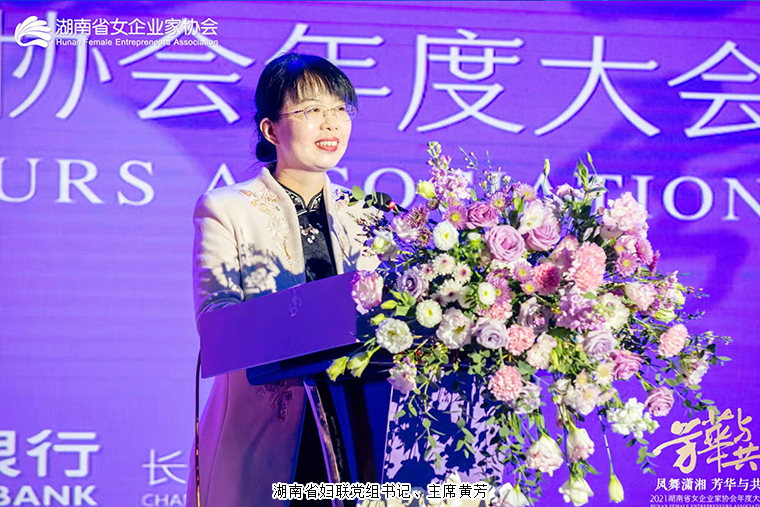 活動(dòng)分為薈芳華、共芳華、品芳華、綻芳華四個(gè)篇章,在全年回顧宣傳片中拉開序幕。張海霞會(huì)長作年度工作報(bào)告,吳建平書記作黨總支工作報(bào)告,汪海燕副會(huì)長作財(cái)務(wù)工作報(bào)告,汪萍監(jiān)事長作監(jiān)事會(huì)報(bào)告。湖南省婦聯(lián)黨組書記、主席黃芳在講話時(shí)表示,2021年省女企協(xié)在海霞會(huì)長的帶領(lǐng)下,主動(dòng)融入全省經(jīng)濟(jì)發(fā)展的大潮,大家齊心協(xié)力搭建交流平臺(tái),尤其是今年建黨百年組織的巾幗心向黨活動(dòng)贏得了社會(huì)的認(rèn)可。面對疫情,會(huì)長企業(yè)帶頭,各級會(huì)員積極響應(yīng),累計(jì)捐款捐物合計(jì)3000多萬,彰顯了湖南企業(yè)家們的大愛情懷。她希望協(xié)會(huì)能不斷提高向心力和凝聚力,使省女企業(yè)家協(xié)會(huì)發(fā)展壯大,成為助推湖南高質(zhì)量發(fā)展的一支紅色娘子軍。