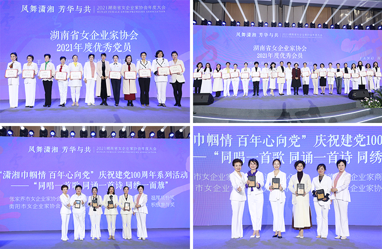 2021年,在第六屆理事會(huì)的領(lǐng)導(dǎo)下,在廣大會(huì)員的大力支持和積極配合下,協(xié)會(huì)認(rèn)真踐行服務(wù)宗旨,引領(lǐng)瀟湘女企業(yè)家聽黨話跟黨走,為經(jīng)濟(jì)社會(huì)發(fā)展貢獻(xiàn)巾幗力量。在建黨100周年來臨之際,協(xié)會(huì)組織開展了一系列主題鮮明、參與廣泛的協(xié)會(huì)活動(dòng),展示了廣大瀟湘女企業(yè)家積極向上的良好風(fēng)貌。其中,涌現(xiàn)出了一批履職盡責(zé)、積極主動(dòng)、無私奉獻(xiàn)的優(yōu)秀代表。大會(huì)集中頒發(fā)了“優(yōu)秀黨員”“優(yōu)秀會(huì)員”“優(yōu)秀團(tuán)體會(huì)員”“優(yōu)秀協(xié)會(huì)工作者”等獎(jiǎng)項(xiàng)。勞嘉總裁被授予“瀟湘巾幗情 百年心向黨”慶祝建黨100周年系列活動(dòng)——紅色之旅“兢兢業(yè)業(yè)”獎(jiǎng)。