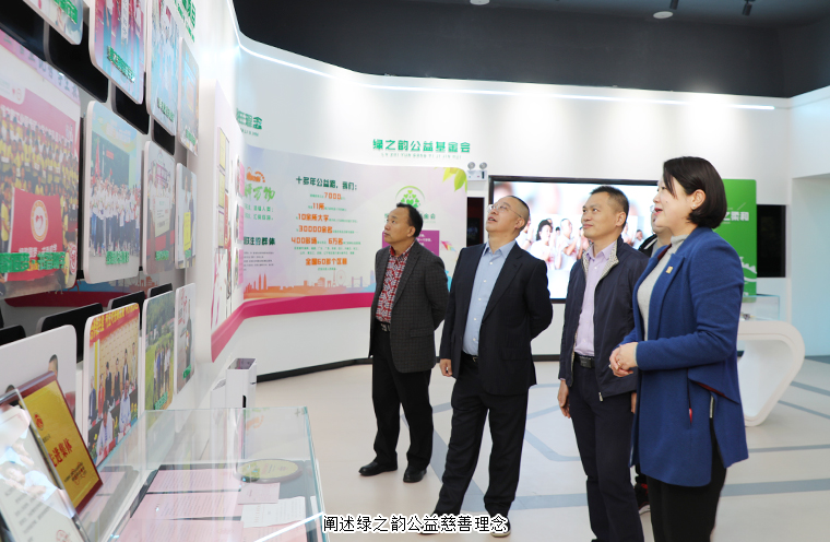 調(diào)研組一行參觀了綠之韻國(guó)際會(huì)議中心多功能形象展示廳,詳細(xì)了解了綠之韻集團(tuán)的企業(yè)發(fā)展歷程、生產(chǎn)經(jīng)營(yíng)狀況、企業(yè)文化建設(shè)、公益慈善以及非公黨建等方面的工作情況。在振興實(shí)業(yè)的同時(shí),綠之韻積極承擔(dān)企業(yè)公民責(zé)任,踴躍參與100多項(xiàng)社會(huì)公益項(xiàng)目,涉及賑災(zāi)濟(jì)困、興教助學(xué)、孤殘救助、醫(yī)療衛(wèi)生、修路飲水、養(yǎng)老醫(yī)療等多個(gè)領(lǐng)域,累計(jì)捐款捐物達(dá)7000多萬(wàn)元。綠之韻堅(jiān)持把公益事業(yè)上升到企業(yè)發(fā)展戰(zhàn)略高度,積極探索新時(shí)代“互聯(lián)網(wǎng)+”、“黨委+公益基金會(huì)”、“微公益”等扶貧新模式,受到各級(jí)領(lǐng)導(dǎo)和社會(huì)各界的廣泛好評(píng)。先后被授予“全國(guó)優(yōu)秀中國(guó)特色社會(huì)主義事業(yè)建設(shè)者”“希望工程25周年杰出貢獻(xiàn)獎(jiǎng)”、“中華慈善突出貢獻(xiàn)獎(jiǎng)”、“全國(guó)‘萬(wàn)企幫萬(wàn)村’精準(zhǔn)扶貧行動(dòng)先進(jìn)民營(yíng)企業(yè)”等多項(xiàng)榮譽(yù)稱號(hào)。綠之韻產(chǎn)業(yè)富民、回饋社會(huì)的良好企業(yè)形象得到了調(diào)研組一行的高度肯定。