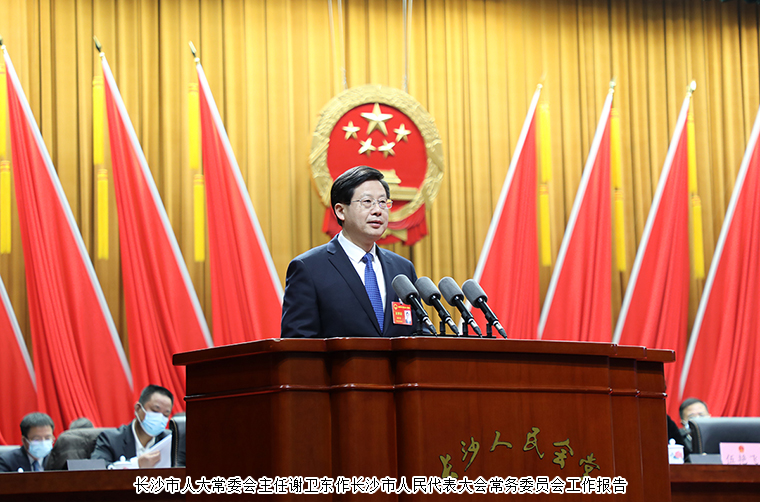 長沙市人大常委會黨組書記、主任謝衛(wèi)東主持會議并宣布大會開幕。會場全體起立,高唱國歌。在熱烈的掌聲中,長沙市人民政府市長作政府工作報告。報告共分四部分:一是本屆政府及2021年工作回顧;二是未來五年的發(fā)展目標(biāo)和重點任務(wù);三是2022年工作重點;四是切實加強政府自身建設(shè)。2021年是黨和國家歷史上具有里程碑意義的一年,也是本屆政府的收官之年。我們深入貫徹習(xí)近平總書記對湖南重要講話重要指示批示精神,全面落實“三高四新”戰(zhàn)略定位和使命任務(wù),融入新發(fā)展格局,推進(jìn)高質(zhì)量發(fā)展,實現(xiàn)“十四五”良好開局。特別是省第十二次黨代會明確實施強省會戰(zhàn)略,為長沙發(fā)展注入強大動力、賦予新的使命。全市上下要深入落實強省會戰(zhàn)略,以實干搶抓機遇,用擔(dān)當(dāng)迎接挑戰(zhàn),進(jìn)一步強化省會意識、彰顯省會作為,奮力在全國爭先進(jìn)、在區(qū)域作示范、在全省當(dāng)標(biāo)桿。