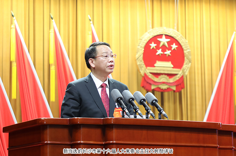 新當(dāng)選的長沙市第十六屆人大常委會主任文樹勛講話。他指出,市十六屆人大及其常委會任期的五年,是長沙現(xiàn)代化建設(shè)的關(guān)鍵五年。站在新的更高起點,我們要切實肩負(fù)起新時代新征程賦予人大的新使命新任務(wù),在新征程趕考路上奮力開創(chuàng)長沙人大工作新局面。一是要把堅持黨的全面領(lǐng)導(dǎo)作為堅定不移的政治坐標(biāo);二是要把始終堅持人民至上作為矢志不渝的價值取向;三是要把圍繞中心服務(wù)大局作為履職盡責(zé)的主題主線;四是要把全面提升工作質(zhì)量作為開創(chuàng)新局的重要任務(wù);五是要把奮力打造“四個機關(guān)”作為自身建設(shè)的目標(biāo)定位。牢記殷切囑托,勇?lián)鷷r代使命,為全面落實“三高四新”戰(zhàn)略定位和使命任務(wù)、全面建設(shè)現(xiàn)代化新長沙作出人大新的貢獻(xiàn)!