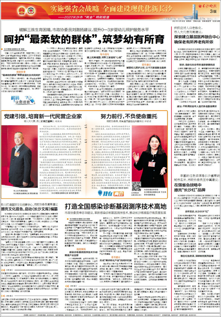 會議期間,胡國安代表廣泛同各界別代表們分別圍繞市委、市政府的中心工作,聚焦長沙強省會發(fā)展大局和人民群眾普遍關(guān)心的重點問題,進(jìn)行深入探討和交流。此次會議,他提交了《關(guān)于新形勢下加強新生代民營企業(yè)家培育和引導(dǎo)的議案》和《關(guān)于促進(jìn)大健康產(chǎn)業(yè)發(fā)展助力“強省會”戰(zhàn)略的建議》兩件議案?!蛾P(guān)于新形勢下加強新生代民營企業(yè)家培育和引導(dǎo)的議案》,建議加強黨建引領(lǐng),強化新生代民營企業(yè)家“高質(zhì)量黨建引領(lǐng)企業(yè)高質(zhì)量發(fā)展”的意識,并通過建立健全新生代企業(yè)家人才庫,組建由優(yōu)秀企業(yè)家、相關(guān)部門黨政領(lǐng)導(dǎo)干部及金融、法律、財務(wù)等專業(yè)人士參加的創(chuàng)業(yè)導(dǎo)師團,組織開展掛職鍛煉,樹立先進(jìn)典型等方式方法為新生代民營企業(yè)家施展才華創(chuàng)造有利的條件,加大對新生代企業(yè)家創(chuàng)業(yè)發(fā)展的扶持和服務(wù)力度?!蛾P(guān)于促進(jìn)大健康產(chǎn)業(yè)發(fā)展助力強省會戰(zhàn)略的建議》,建議通過打造自主優(yōu)勢品牌,助推企業(yè)由速度型向質(zhì)量型轉(zhuǎn)變;完善相關(guān)政策法律法規(guī),加強健康產(chǎn)業(yè)誠信建設(shè);建立健全支持健康產(chǎn)業(yè)發(fā)展的政策,支持企業(yè)做大做精做強等措施,構(gòu)建大健康產(chǎn)業(yè)核心區(qū),打造大健康產(chǎn)業(yè)新高地,將為我市推進(jìn)強省會戰(zhàn)略提供重要的支撐。胡國安代表今年的兩件議案,內(nèi)容緊扣當(dāng)前焦點熱點話題,受到與會代表的廣泛認(rèn)同,引發(fā)多家新聞媒體聚焦報道。