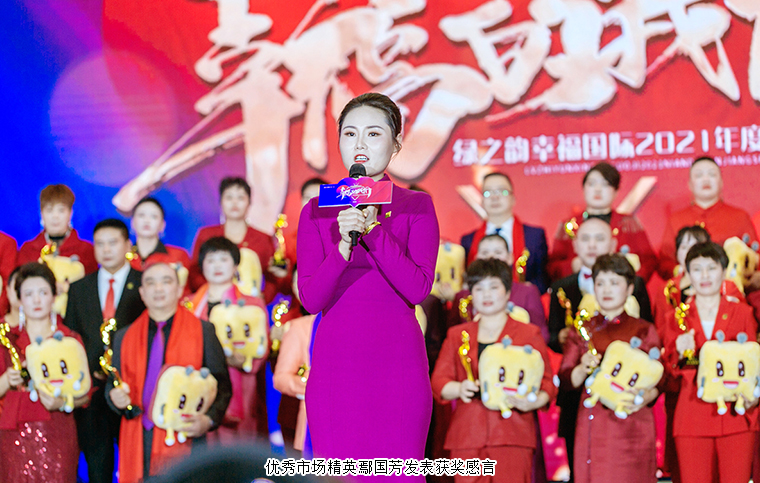 他們,從不缺席每一次成長,從不放棄每一份希望。他們從追逐光,到成為光,用破繭成蝶的蛻變,為奮斗注入新的內涵。綠之韻國際商學院執(zhí)行院長黎芋成、綠之韻集團市場運營中心區(qū)域業(yè)務總監(jiān)譚紅為“綠之韻幸福國際2021年度最具成長獎”獲得者頒獎,并致以祝賀。優(yōu)秀市場精英鄢國芳發(fā)表獲獎感言。