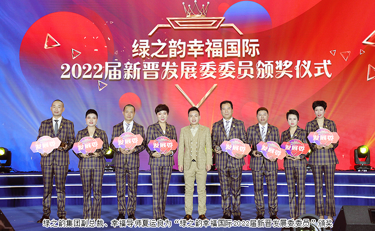 他們激情澎湃,用自己的熱血與膽識攻克困難。他們大愛貫耳,用智慧和汗水擊響市場邁步前進的鑼鼓。他們肩負重擔,用責任和使命助推事業(yè)發(fā)展的光明前景。綠之韻集團副總裁、幸福導師夏運良為“綠之韻幸福國際2022屆新晉發(fā)展委委員”頒獎。8位新晉發(fā)展委委員發(fā)表感言。