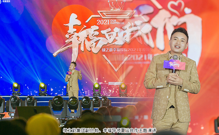 熱烈的掌聲中,綠之韻集團副總裁、幸福導師夏運良登上舞臺作主題演講。他表示,今天盛典的主題是“幸福的我們”,綠之韻幸福國際已走過兩年多的旅程,我們共同經歷了風雨,收獲了成長,如果一定要找一個詞,來形容我們這群伙伴,沒什么比“幸福的我們”更合適。2021年,綠之韻幸福國際腳步堅定,共御疫情反復的考驗,產品升級邁上新臺階,事業(yè)版圖屢創(chuàng)新高。今天的相聚為團圓,為表彰,為賦能,更為吹響2022年戰(zhàn)斗的號角。2022年,綠之韻幸福國際征戰(zhàn)遠方,共享智能科技的錦囊,無畏前路荊棘,期待每一位竭力奮戰(zhàn)的幸福代言人,2022再創(chuàng)奇跡,為了我們的幸福,為了幸福的我們,去奮斗!