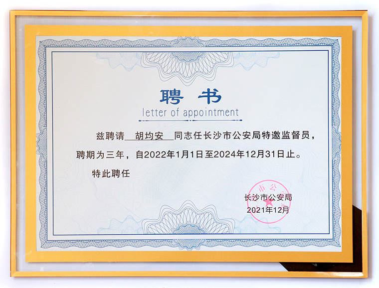 綠之韻集團(tuán)副總裁胡均安再次受聘為長沙市公安局特邀監(jiān)督員