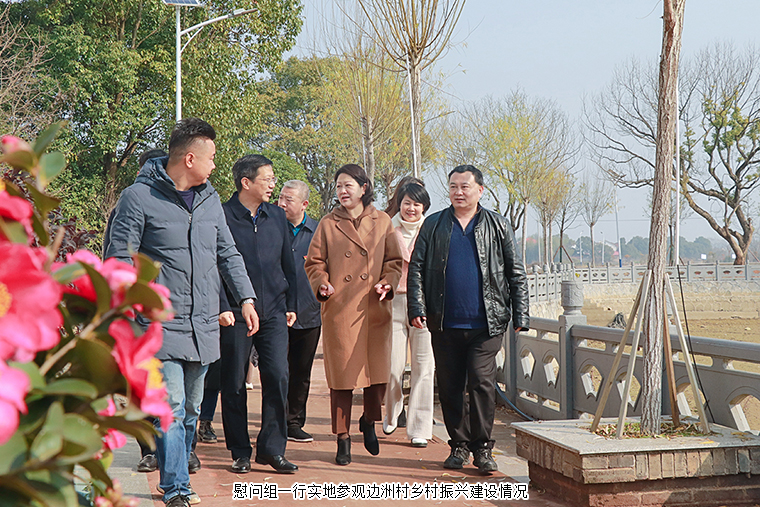隨后,慰問組一行實地調(diào)研了邊洲村鄉(xiāng)村振興建設情況,這里正發(fā)生著翻天覆地的變化,集現(xiàn)代農(nóng)業(yè)、休閑旅游、田園居住于一體的“田園綜合體”建設項目已初見雛形。寬闊平整的道路,錯落有致的民居,滿目皆綠,處處是景。