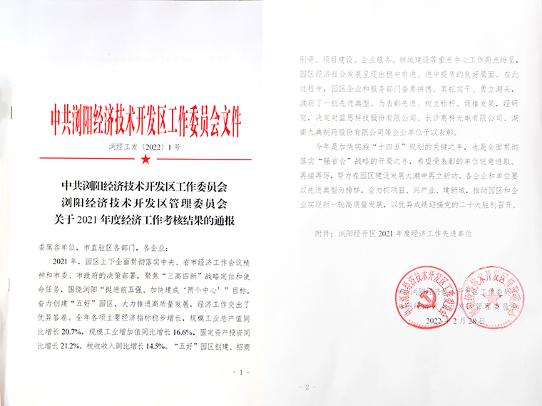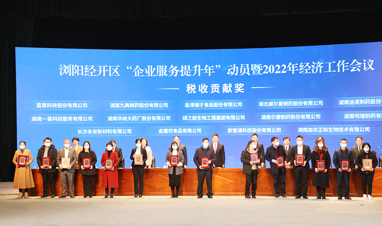 瀏陽市委副書記、市長王雄文宣讀瀏陽經(jīng)開區(qū)2021年度經(jīng)濟工作考核結(jié)果。大會對2021年度先進企業(yè)及個人予以集中表彰,并進行2022年一季度“開門紅”重特大項目集中簽約。綠之韻集團憑借過去一年取得的突出成績,被國家級瀏陽經(jīng)開區(qū)管委會授予2021年度“稅收貢獻獎”、“規(guī)模發(fā)展獎”和“'平安企業(yè)'創(chuàng)建先進單位。
