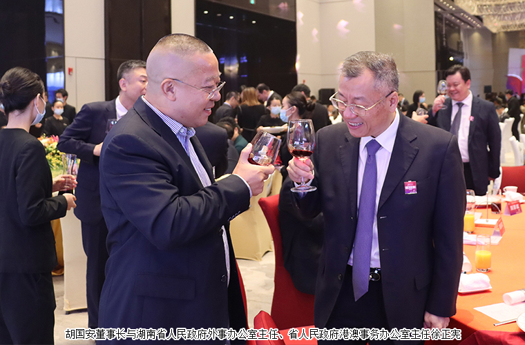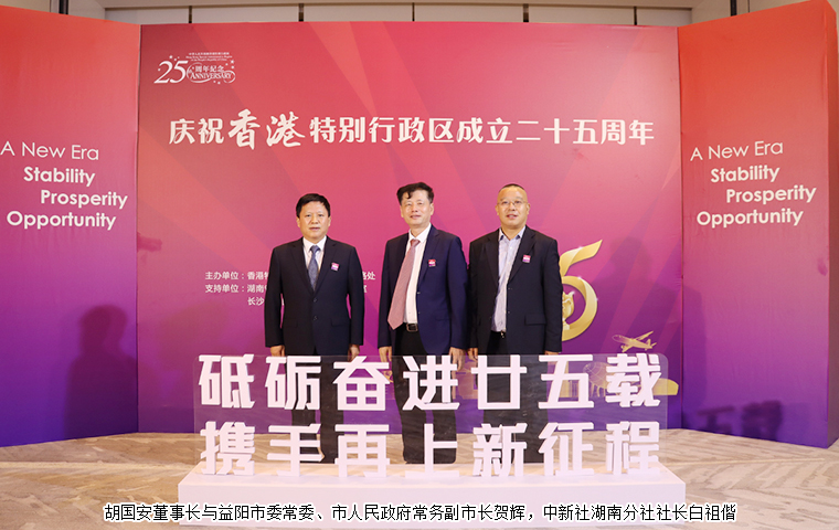 為慶祝香港特別行政區(qū)成立25周年,共同見證“一國兩制”實踐偉大成就,并展望湖南與香港合作新前景,香港特區(qū)政府駐湖南聯(lián)絡(luò)處、湖南省政府港澳辦、長沙市政府于7月13日在長沙舉辦香港特別行政區(qū)成立25周年慶祝晚宴。香港特別行政區(qū)行政長官李家超視頻致辭。湖南省委常委、省人民政府常務(wù)副省長李殿勛,香港特別行政區(qū)政府駐武漢經(jīng)濟(jì)貿(mào)易辦事處主任郭偉勛,湖南省人民政府外事辦公室主任、省人民政府港澳事務(wù)辦公室主任徐正憲,湖南省委統(tǒng)戰(zhàn)部副部長、省社會主義學(xué)院黨組書記丁學(xué)新,長沙市委常委、市委宣傳部部長陳澎,香港特別行政區(qū)政府駐湖南聯(lián)絡(luò)處主任廖鳳嫻等領(lǐng)導(dǎo)出席活動。湖南省政協(xié)委員,香港長沙聯(lián)誼會會長,香港長沙商會常務(wù)副會長,綠之韻集團(tuán)董事長胡國安受邀參加活動。