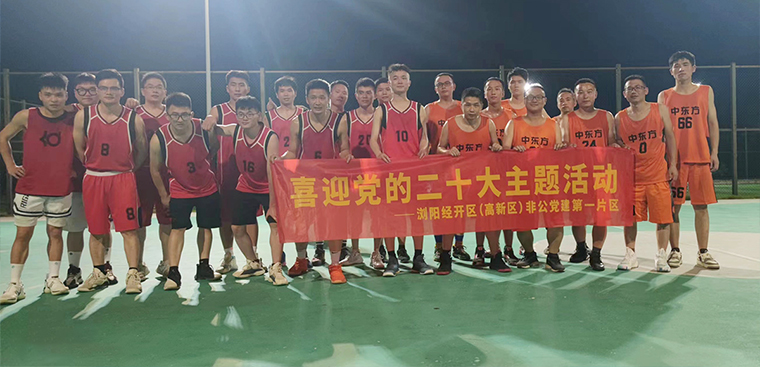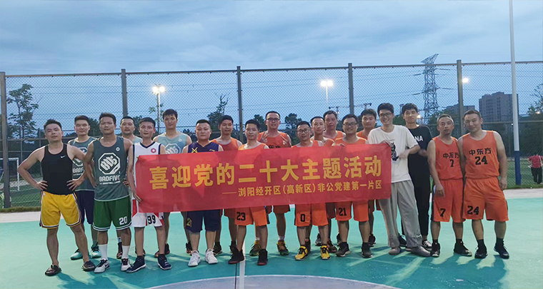 為豐富職工群眾精神文化生活,喜迎黨的二十大,瀏陽(yáng)經(jīng)開(kāi)區(qū)非公黨建第一片區(qū)開(kāi)展了“迎‘籃’而上,追‘球’夢(mèng)想”主題黨日活動(dòng)。2022年9月15日,瀏陽(yáng)經(jīng)開(kāi)區(qū)非公黨建第一片區(qū)為比賽獲獎(jiǎng)隊(duì)伍舉行了頒獎(jiǎng)儀式。瀏陽(yáng)經(jīng)開(kāi)區(qū)黨工委委員、管委會(huì)副主任、企業(yè)黨委書(shū)記何六生,瀏陽(yáng)經(jīng)開(kāi)區(qū)企業(yè)黨委委員、聯(lián)絡(luò)科科長(zhǎng)胡曉江,綠之韻集團(tuán)黨委書(shū)記劉云以及第一片區(qū)17個(gè)企業(yè)的各支部書(shū)記參加頒獎(jiǎng)儀式。