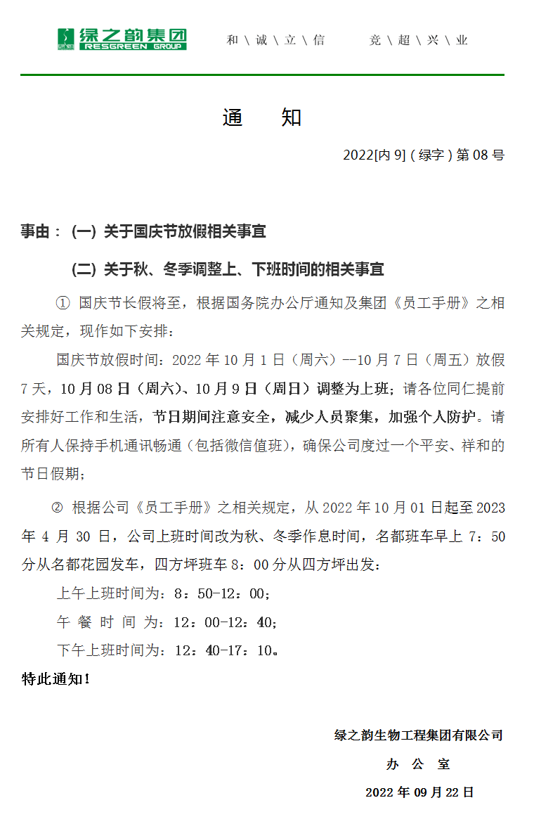 通 知 丨關于“中秋國慶”節(jié)放假安排和秋冬季作息時間調(diào)整的相關事宜