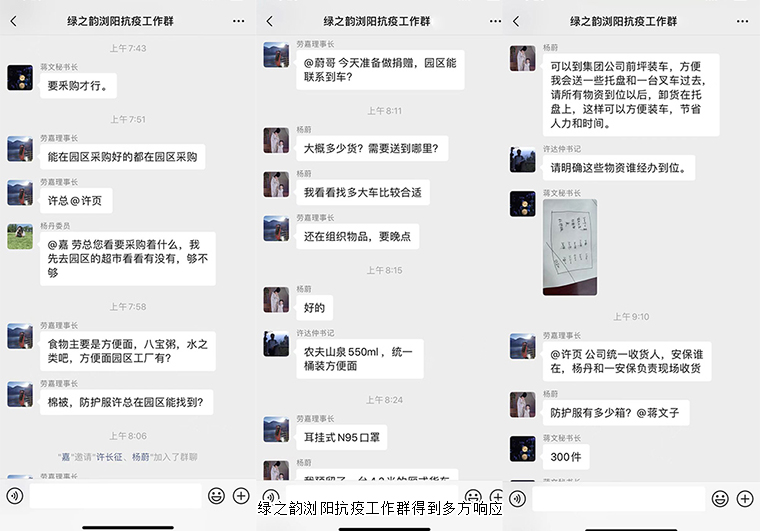 共克時艱,搭建抗疫“暖心橋”。在這場疫情大考中,綠之韻快速反應,積極作為,第一時間便成立安全防控小組并制定應急預案,始終把員工健康安全放在第一位,全力做好人員管控、健康排查、防疫宣傳、環(huán)境消毒、物資儲備等工作。綠之韻集團董事長胡國安,董事總裁、綠之韻公益基金會理事長勞嘉專門成立瀏陽抗擊疫情工作小組,親自指揮,聯(lián)動綠之韻集團黨委、工會、公益基金會、團委,緊急籌措物資。瀏陽市政協(xié)委員、綠之韻公益基金會秘書長蔣文積極作為,廣泛聯(lián)絡抗疫物資和志愿者行動。綠之韻集團黨委副書記許達仲、黨委委員楊丹始終堅守在防疫一線,號召留守園區(qū)的黨員、企業(yè)員工作為愛心志愿者參與防疫幫扶工作,守望相助、共克時艱,匯成了同心抗疫的暖心洪流。