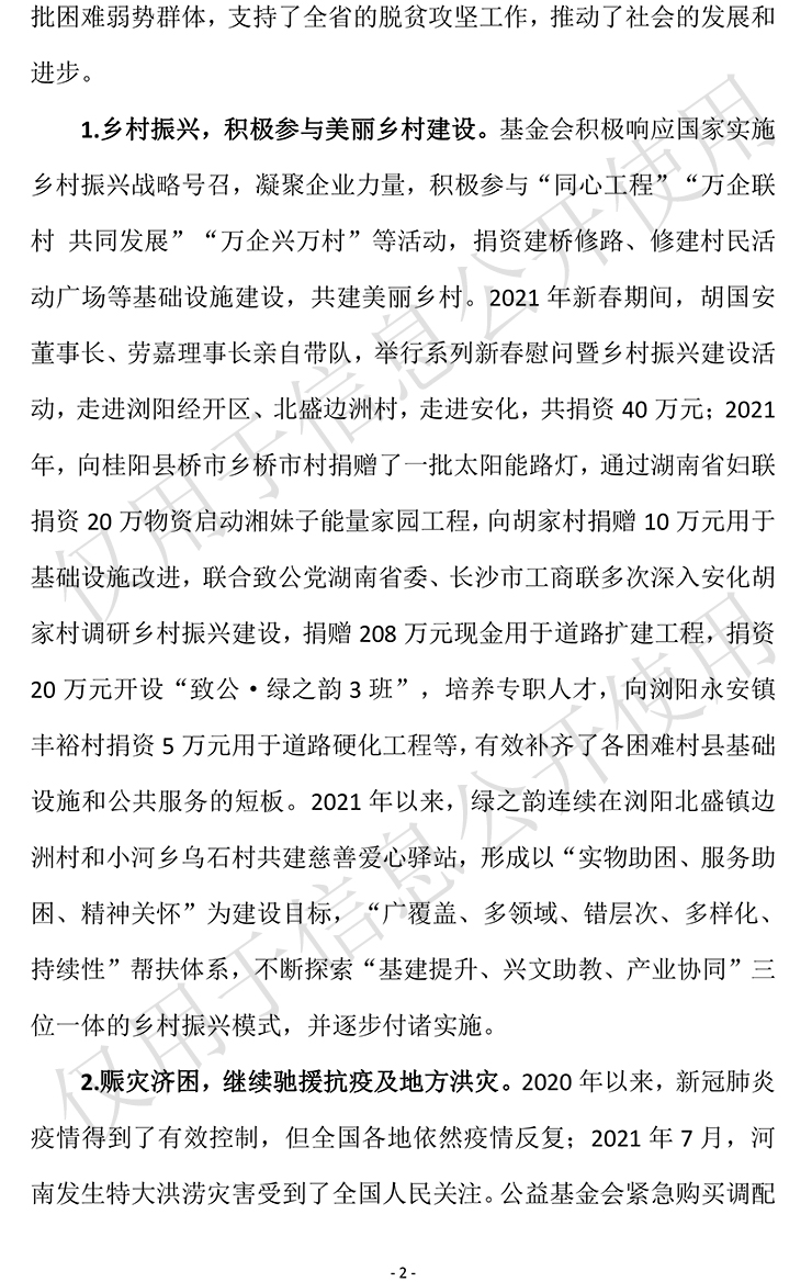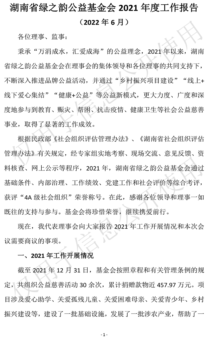 湖南省綠之韻公益基金會(huì)2021年度工作報(bào)告