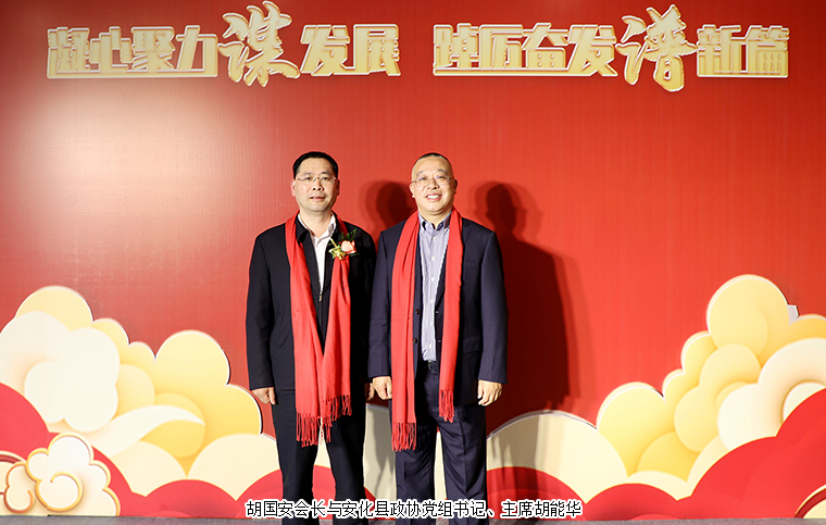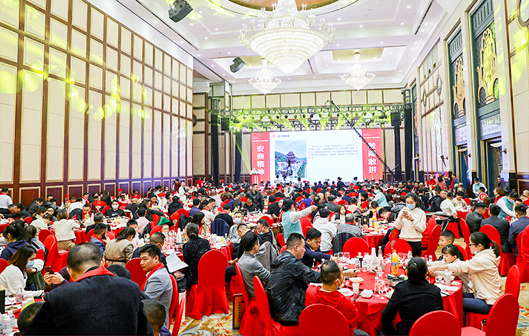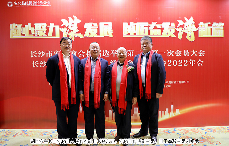 齊心同所愿,把酒敘鄉(xiāng)情。當晚,還舉辦了2022長沙市安化商會年會。中共長沙市委統(tǒng)戰(zhàn)部副部長、市工商聯(lián)黨組書記何惠風,安化縣政協(xié)黨組書記、主席胡能華,長沙市工商聯(lián)副主席田桂元,安化縣人民政府副縣長瞿東江,縣政協(xié)黨組副書記、副主席廖小寒,安化縣政協(xié)副主席、縣工商聯(lián)主席劉暢術,湖南安化經(jīng)濟開發(fā)區(qū)管理委員會主任胡盛云;羽毛球世界冠軍黃穗、羽毛球奧運冠軍田卿等領導、嘉賓出席大會。湖南省政協(xié)委員、湖南省慈善總會副會長、湖南長沙市光彩事業(yè)基金會理事長、綠之韻集團董事長胡國安與長沙市安化商會全體會員、安化各大商會代表、長沙各行業(yè)安化籍知名企業(yè)和精英人士近300人齊聚一堂,共迎未來發(fā)展新征程。