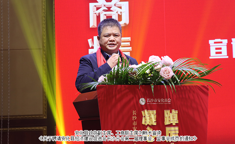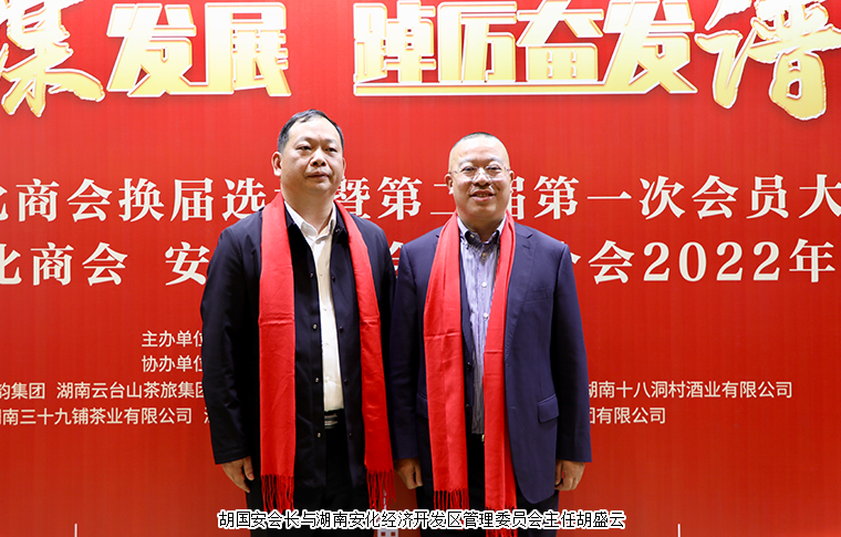 安化縣政協(xié)黨組書記、主席胡能華對新當選的理事會成員表示熱烈的祝賀,并向各位鄉(xiāng)友通報了安化縣今年的經(jīng)濟和社會發(fā)展情況。他表示,今年來,安化全力以赴抓好高質量發(fā)展各項工作,主要經(jīng)濟指標穩(wěn)步增長,經(jīng)濟社會發(fā)展大局穩(wěn)中向好。堅持優(yōu)先發(fā)展,全面啟動文化振興引領鄉(xiāng)村振興。堅持集聚集群,產業(yè)發(fā)展勢頭強勁。全力推進茶旅、礦產建材、生物醫(yī)藥、新能源、新材料五大產業(yè)鏈建設。堅持質效并舉,項目建設蹄疾步穩(wěn)。安化抽水蓄能電站正式開工,溫德姆至尊豪庭酒店開門迎客,安化黑茶特色小鎮(zhèn)、官新高速、東渠公路、青云洞--云上九歌等項目加速推進。堅持以人為本,民生福祉不斷增進。高質量舉辦全省“三下鄉(xiāng)”、湘臺茶香會、第四屆“湖南黃精”高峰論壇、全市首屆文旅融合發(fā)展大會,安化的美譽度、知名度不斷攀升。這些成績離不開廣大安商的共同支持和創(chuàng)造,他希望商會全體會員能一如既往地為家鄉(xiāng)建設建言獻策,繼續(xù)發(fā)揮好橋梁紐帶作用,積極宣傳家鄉(xiāng)、推介安化,讓更多企業(yè)家朋友來安化投資興業(yè),實現(xiàn)財富夢想,共筑美好未來。