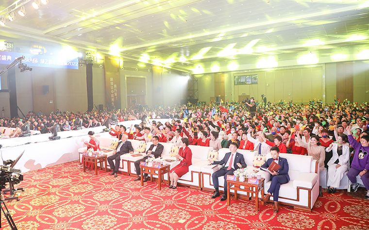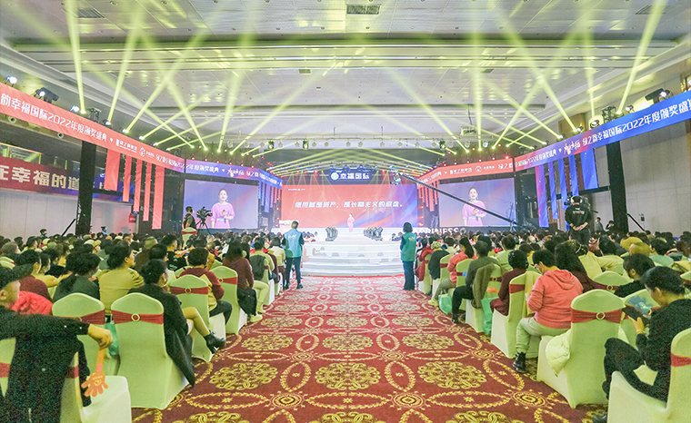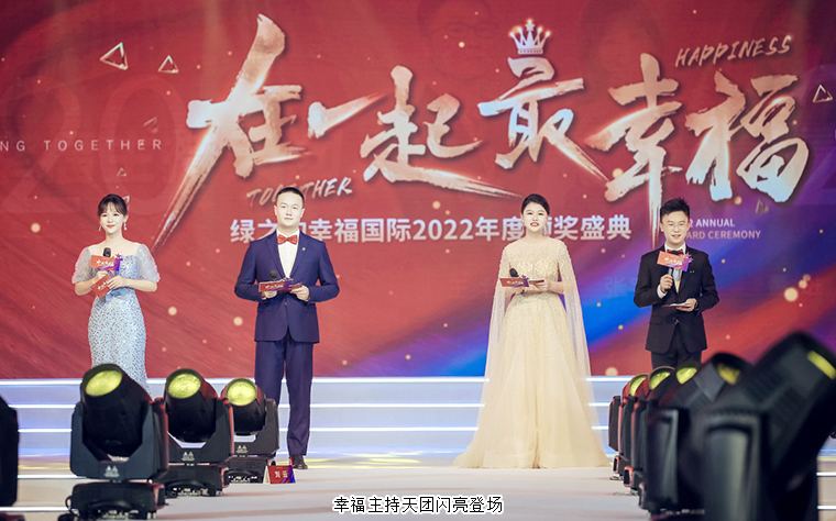 2023年1月11日晚,在一起·最幸?!G之韻幸福國際2022年度頒獎(jiǎng)盛典在集團(tuán)總部國際會(huì)議中心盛大舉行。綠之韻集團(tuán)董事長胡國安,董事、總裁勞嘉,副總裁胡均安,副總裁、幸福導(dǎo)師夏運(yùn)良及高管團(tuán)隊(duì),與來自全國各地的1000余名綠之韻家人匯聚一堂,共襄盛舉。大會(huì)全程通過PC、移動(dòng)端在線互動(dòng)視頻直播,線上近60000人次共同收看和分享了大會(huì)盛況。